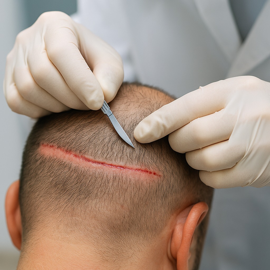 Our expert surgeon meticulously excises a strip of scalp from the back or sides of the head, areas known for their dense hair growth and resistance to baldness. This strip is rich in healthy hair follicles, which are essential for the transplantation process. Each follicle is carefully preserved to ensure optimal results, allowing for a natural and fuller appearance in the balding areas.